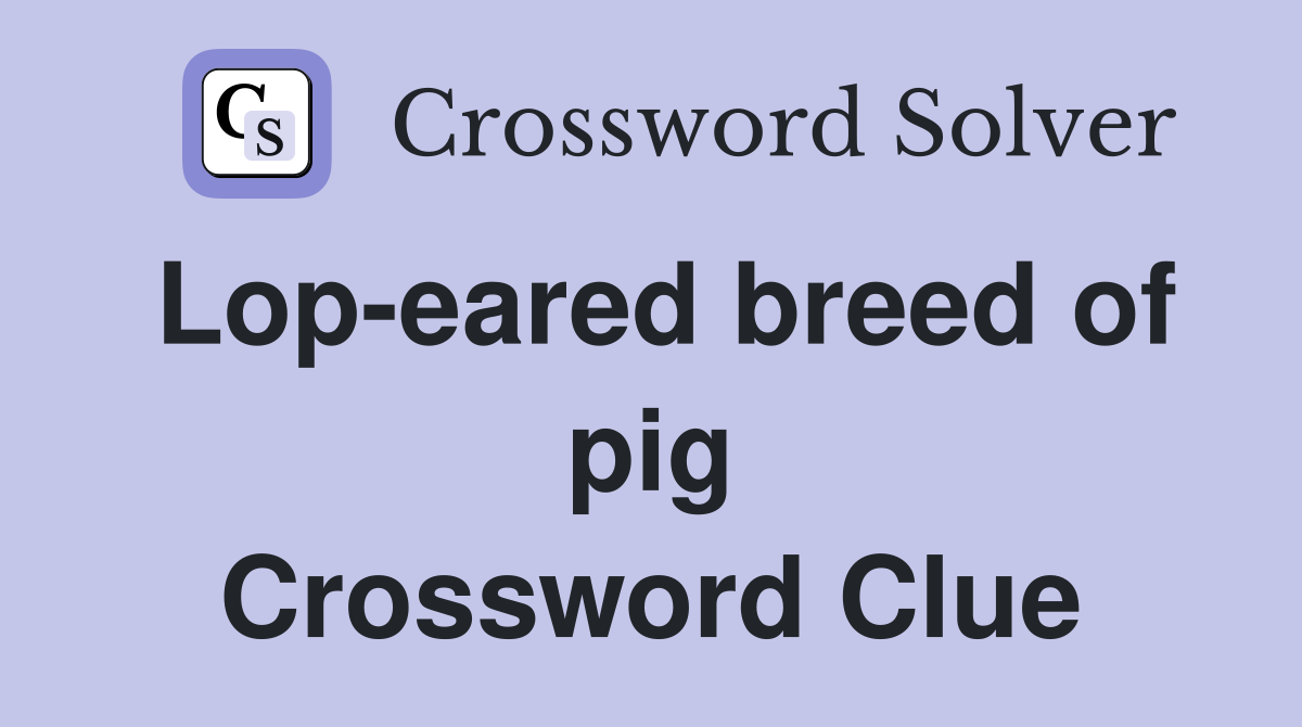 Lop eared breed of pig Crossword Clue Answers Crossword Solver