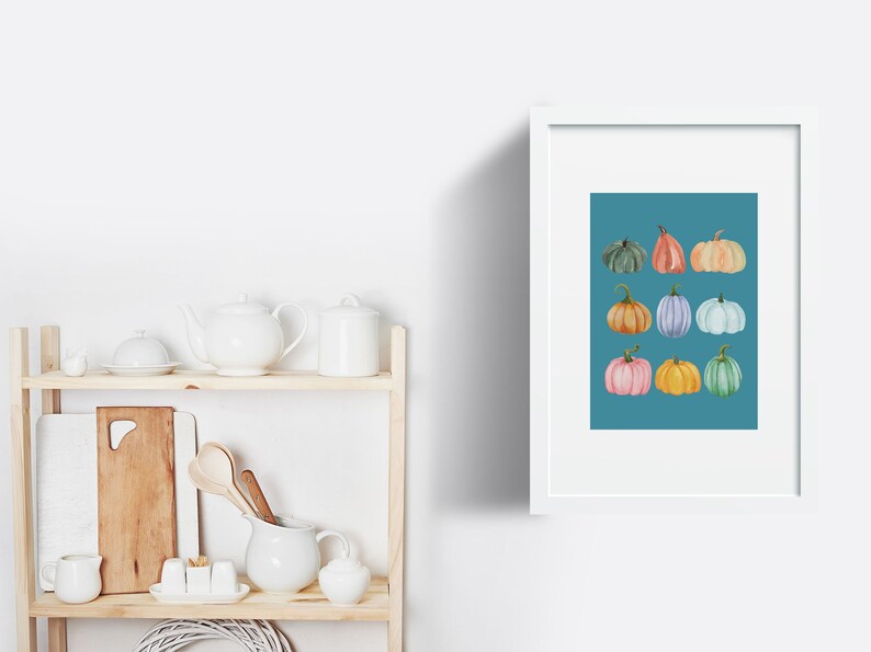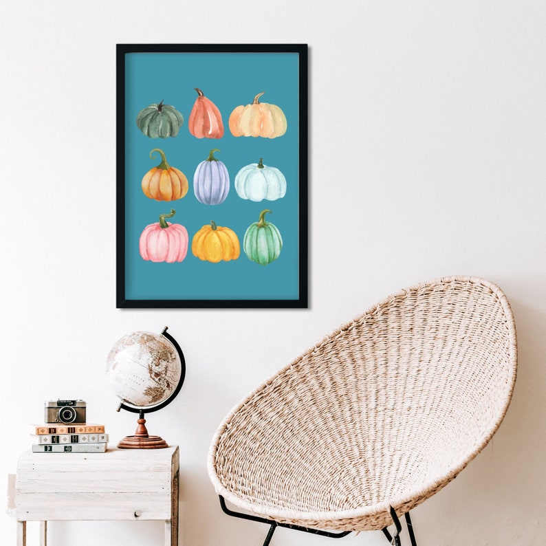 Teal Pumpkin Printable Wall Art Fall Watercolor Pumpkin Print