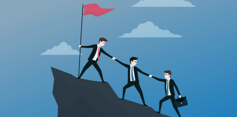 Group of Business People Climbing on Mountain Peak Symbol of Team Work