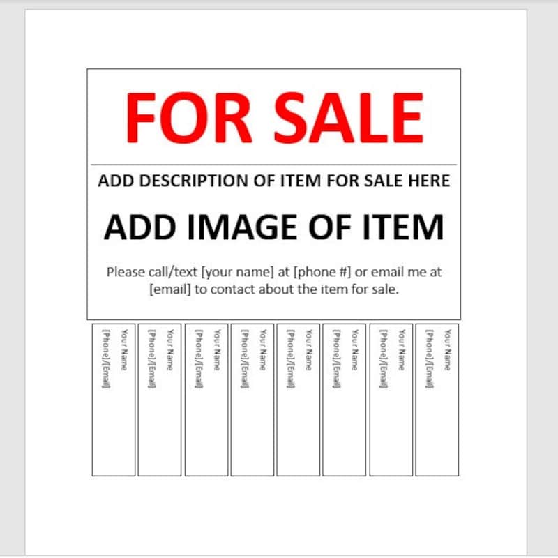 For Sale Tear Away Flyer Template Self Customizable and Editable PDF