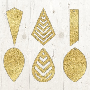 Gold Glitter Tear drop Earring Template PNG digital design