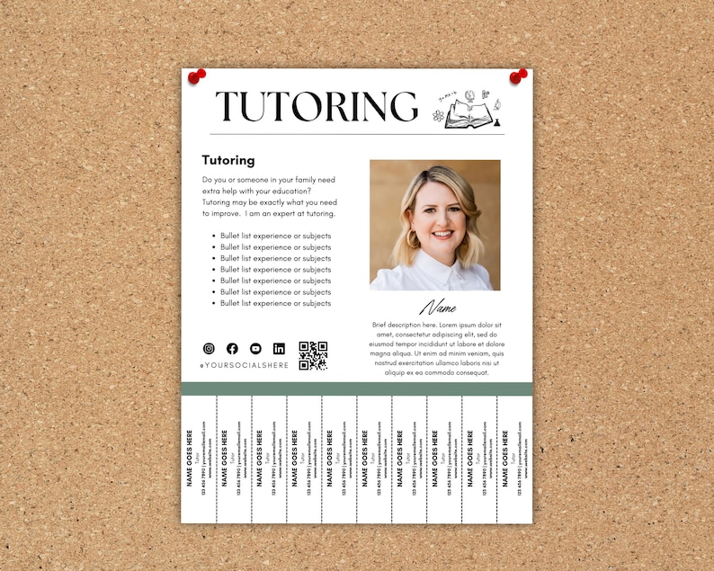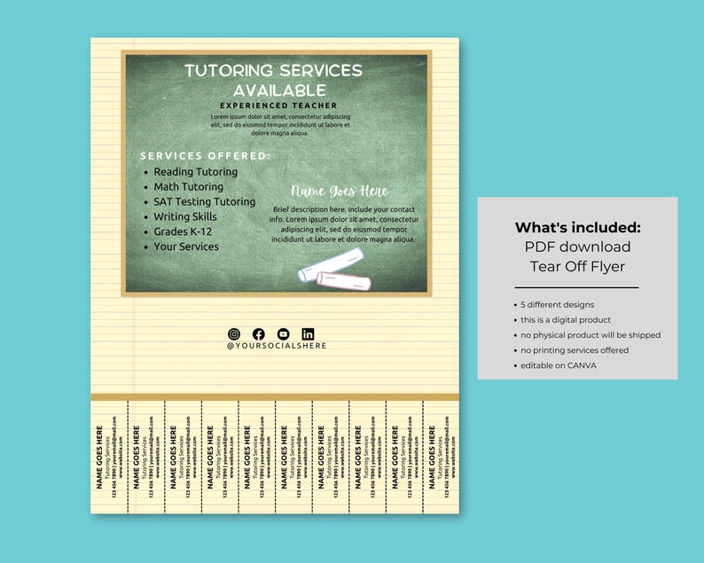 Customizable Tutoring Tear off Flyer Template DIY Canva Design