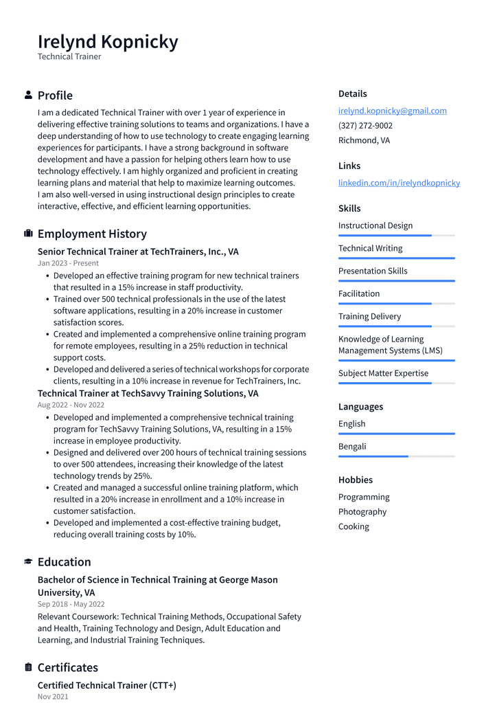 Microsoft Technical Trainer Resume Examples ResumeCat