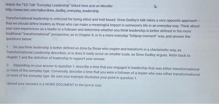 Solved Watch the TED Talk quot Everyday Leadership quot linked here Chegg com
