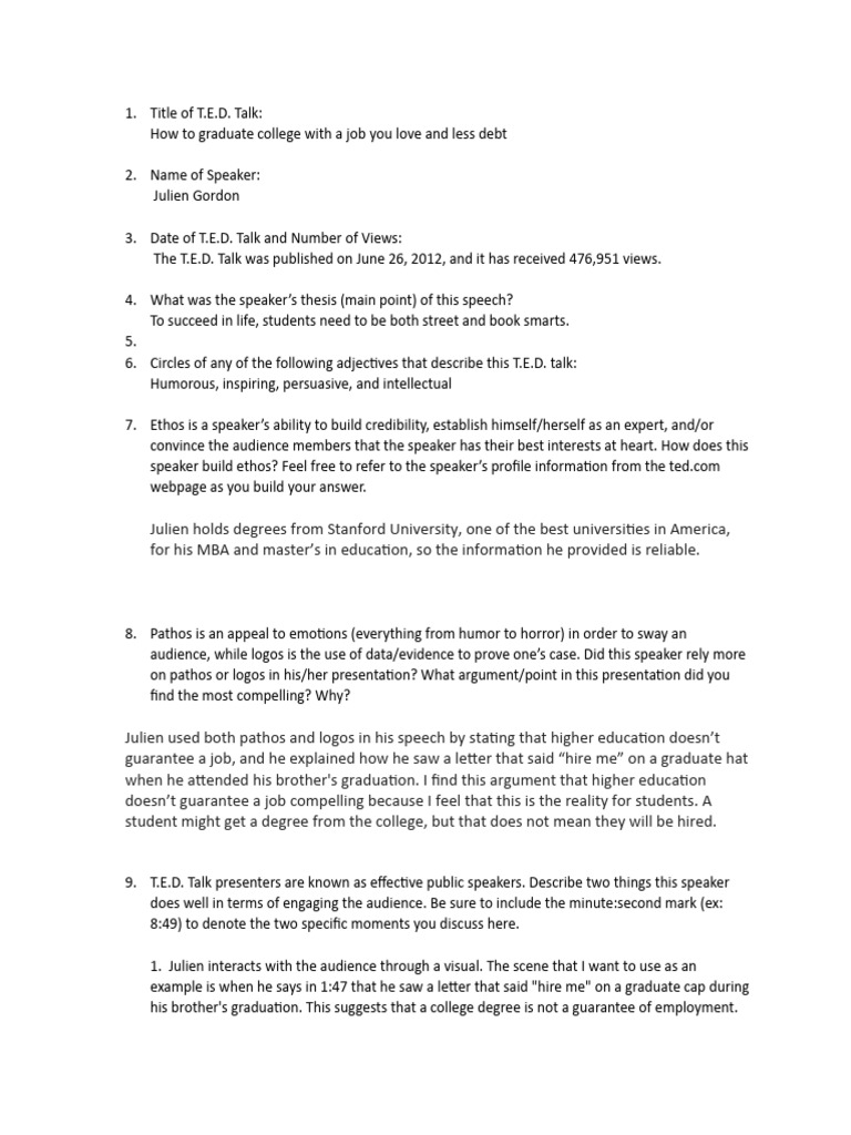 Ted Talk Worksheet PDF Logos Cognition