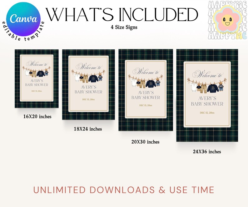 Editable Luxury Teddy Bear Baby Shower Welcome Sign Classic Plaid