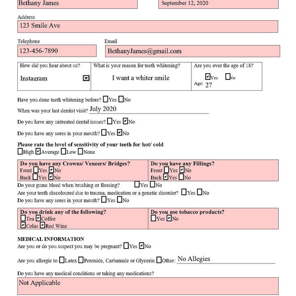 Teeth Whitening Consent Form Template