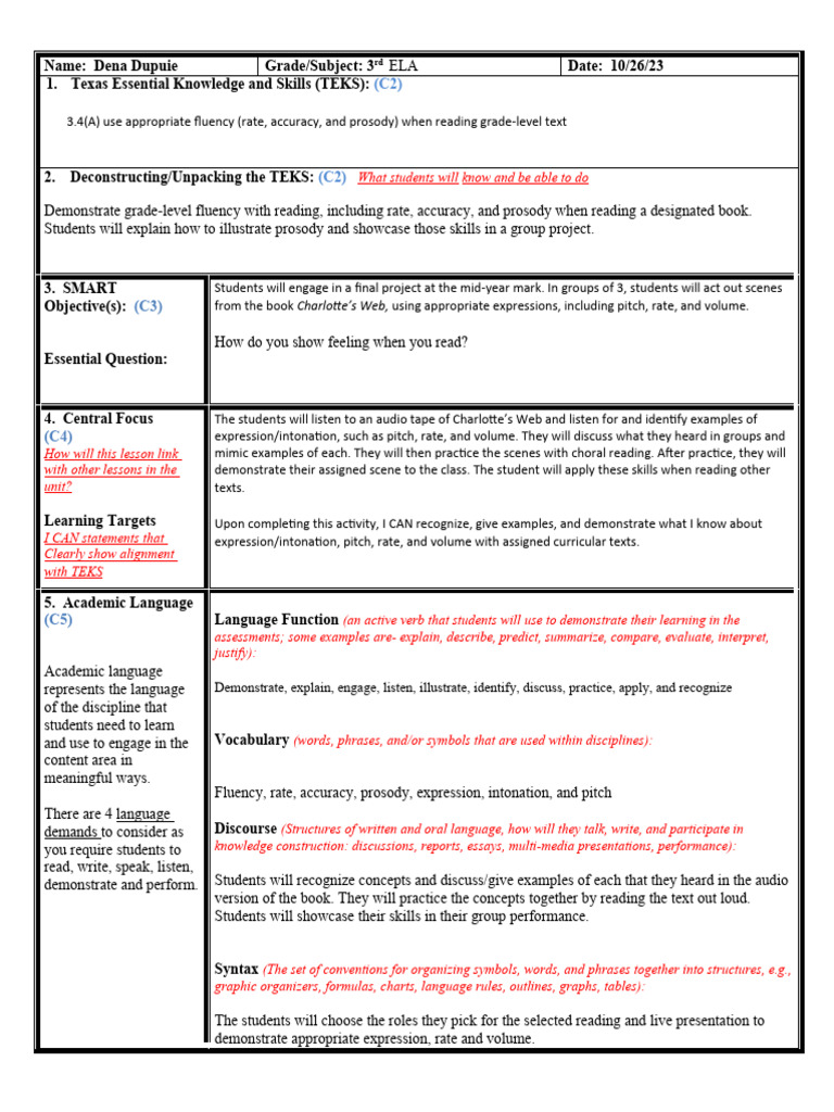 Teks Lesson Plan Template