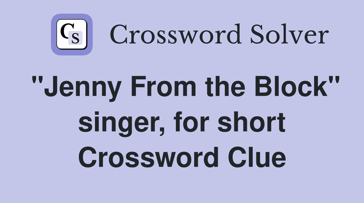 quot Jenny From the Block quot singer for short Crossword Clue Answers