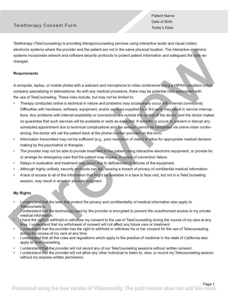 TELETHERAPY PATIENT CONSENT FORM: Fill out sign online DocHub