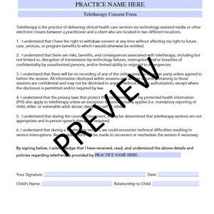Teletherapy Consent Form Editable Printable Template PDF