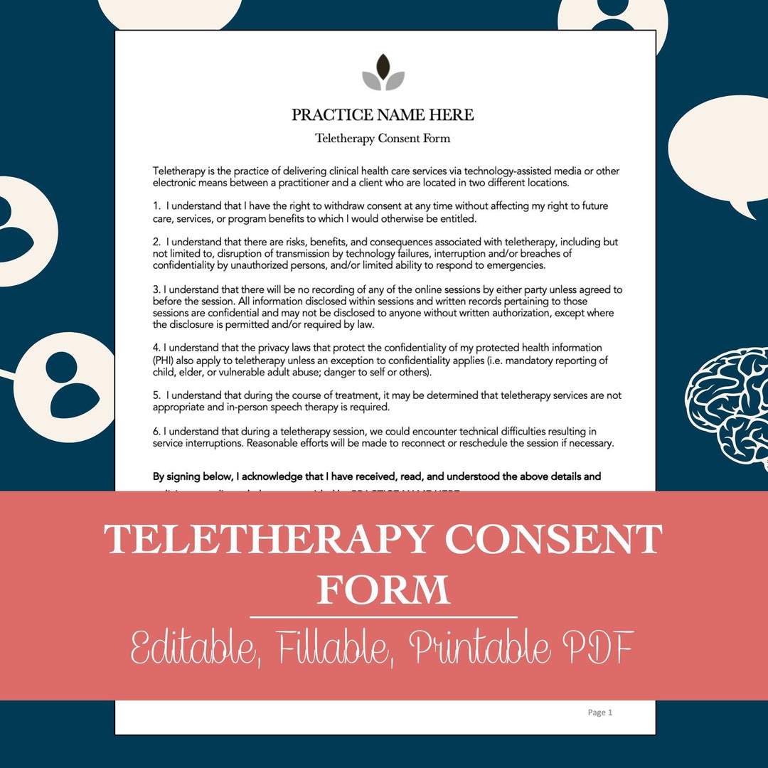 Teletherapy Consent Form for Speech Therapy (editable Fillable