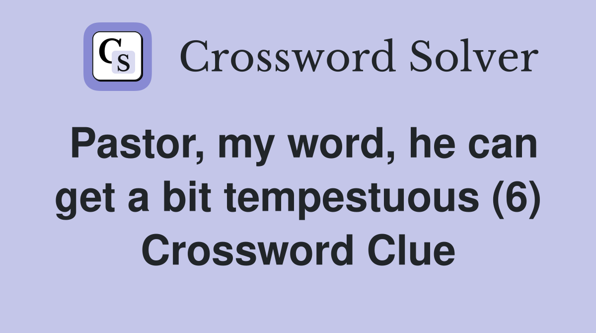 Pastor my word he can get a bit tempestuous (6) Crossword Clue
