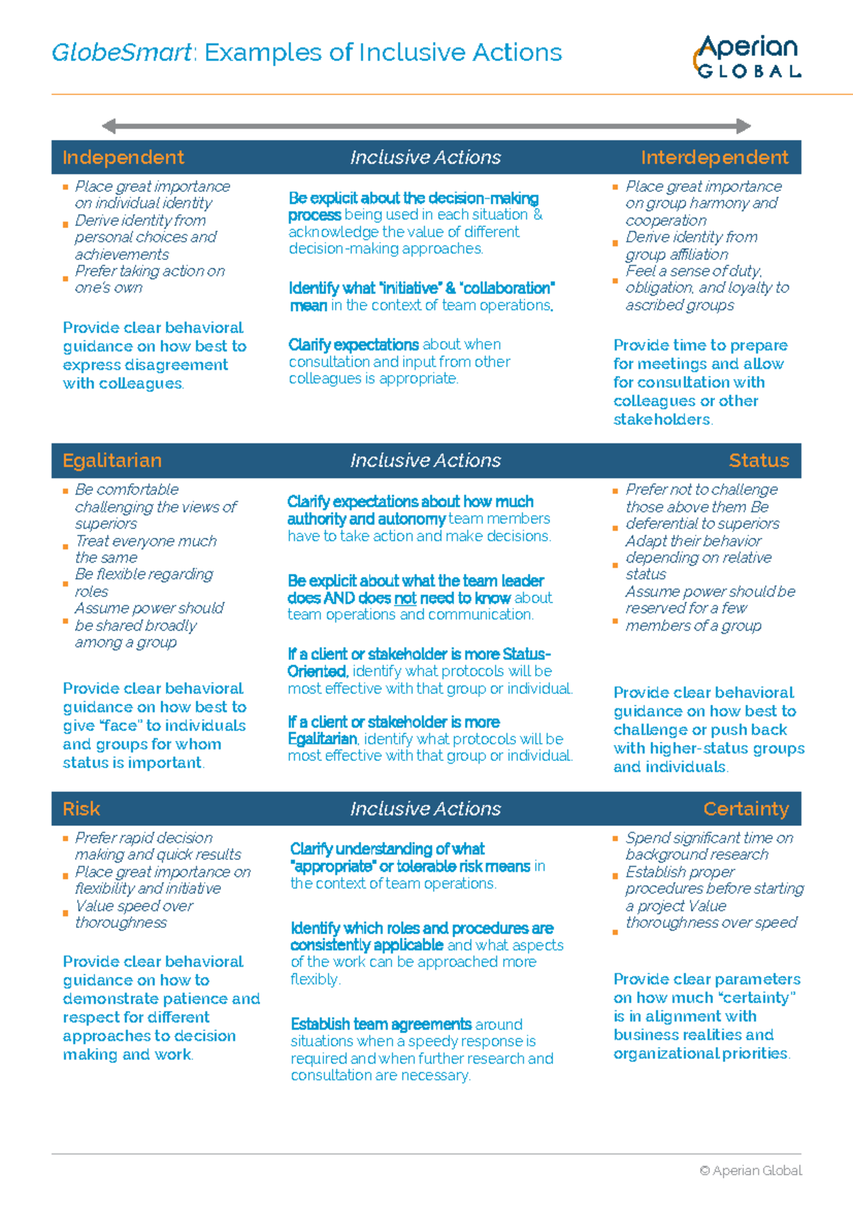 The Globe Smart Cultural Dimensions at a Glance and Inclusive Actions
