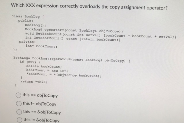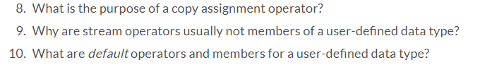 Solved 8 What is the purpose of a copy assignment operator? Chegg com