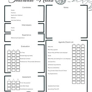 Interview Notes Template Etsy