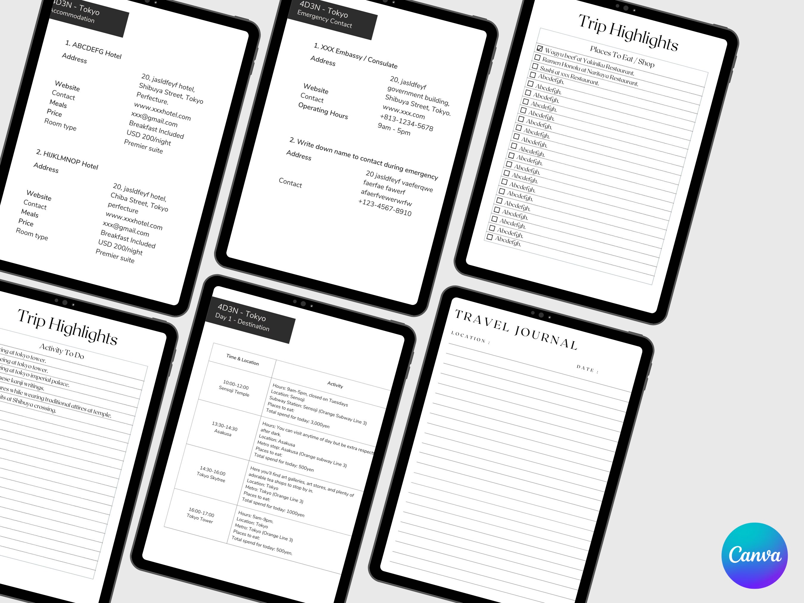 Printable Digital Download Travel Planner Minimalist Template Editable