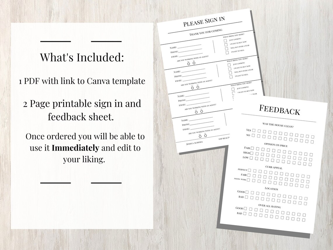 Editable Open House Sign in Sheet Open House Flyers and Forms