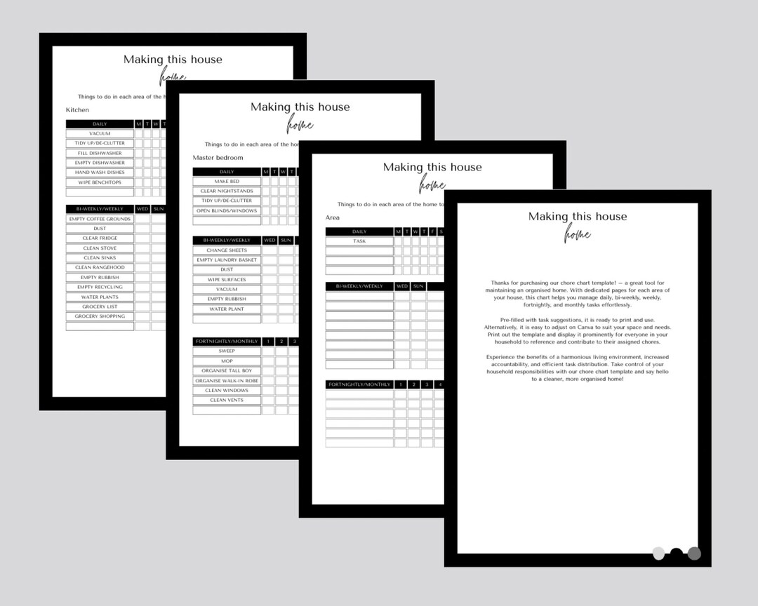 Home Chore Chart Canva Template Black and White Etsy