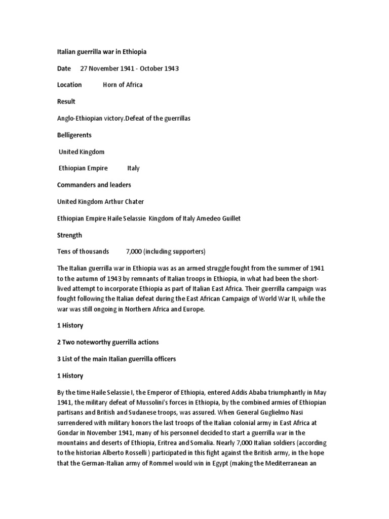 Italian Guerilla War in Ethiopia PDF Conflicts World War II