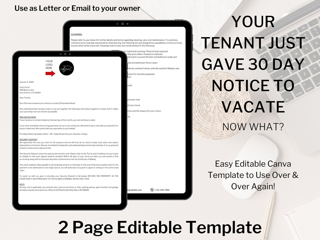 Tenant 30 Day Notice Property Management Editable Canva Template Etsy