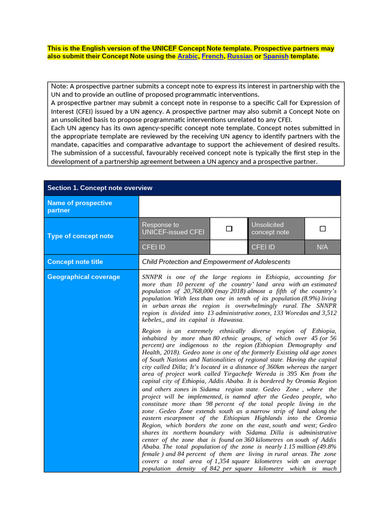 UNICEF Concept Note Template With Guideline SqQI0nj PDF