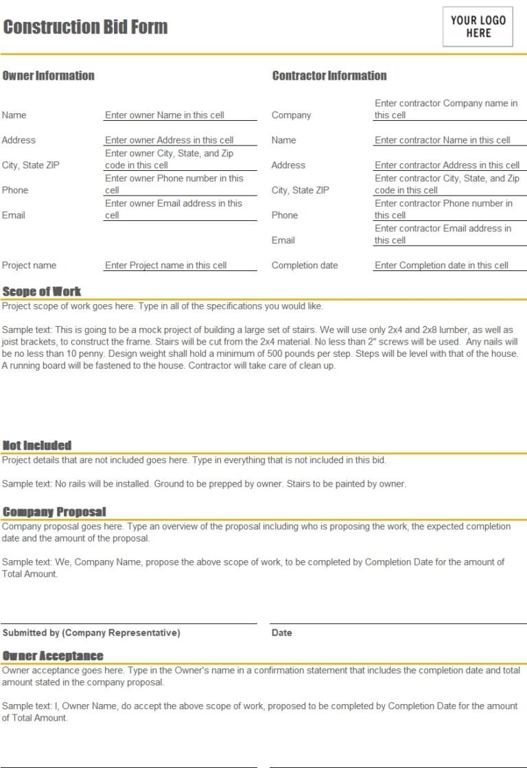 Here are some of the images for Template For Construction Bid that we found in our website database.