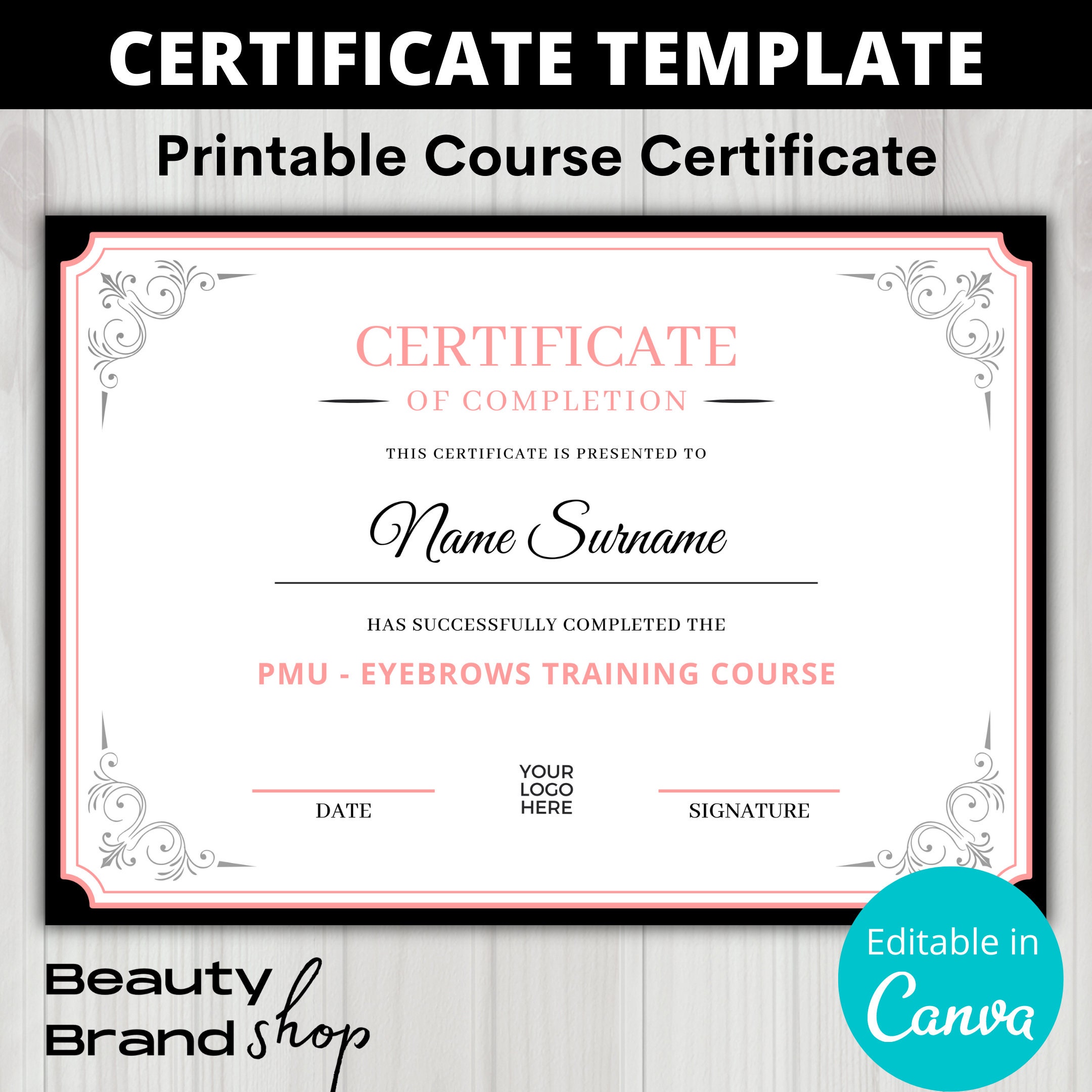 Editable Certificate Template Stylish Certificate Pink Course Award