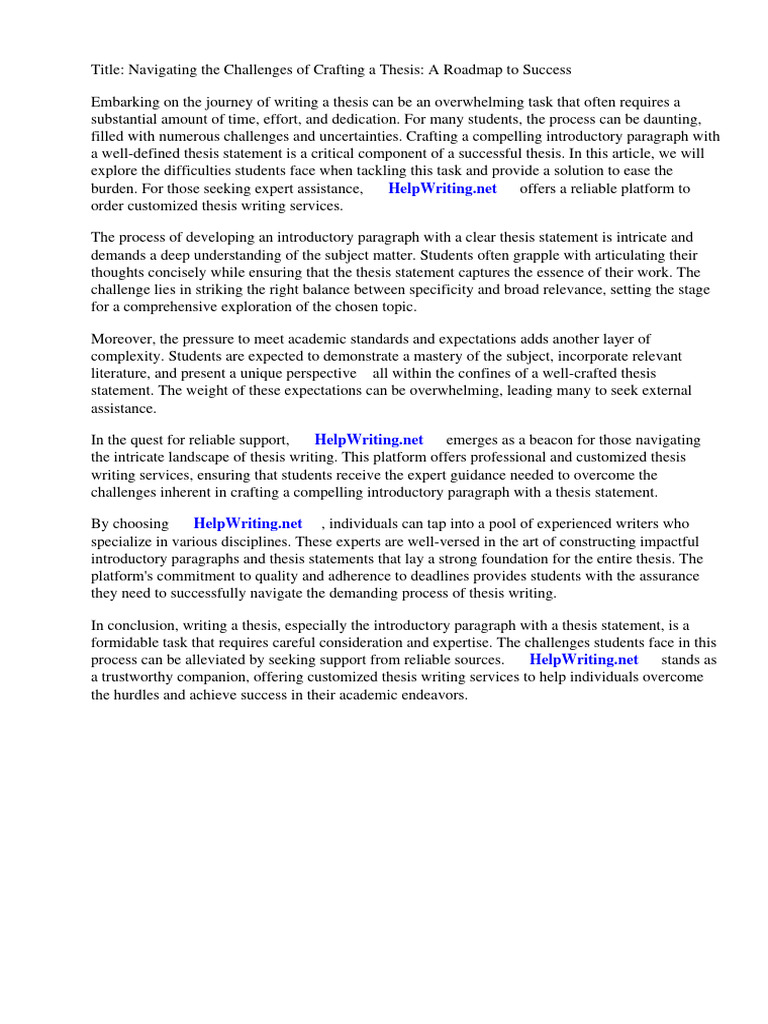 Introduction Paragraph Thesis Statement Example Download Free PDF