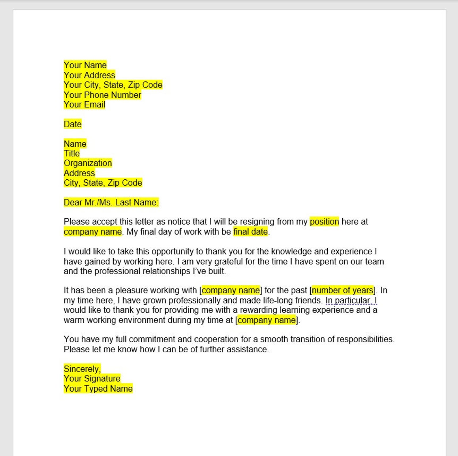Letter Of Resignation Template Docs Infoupdate org