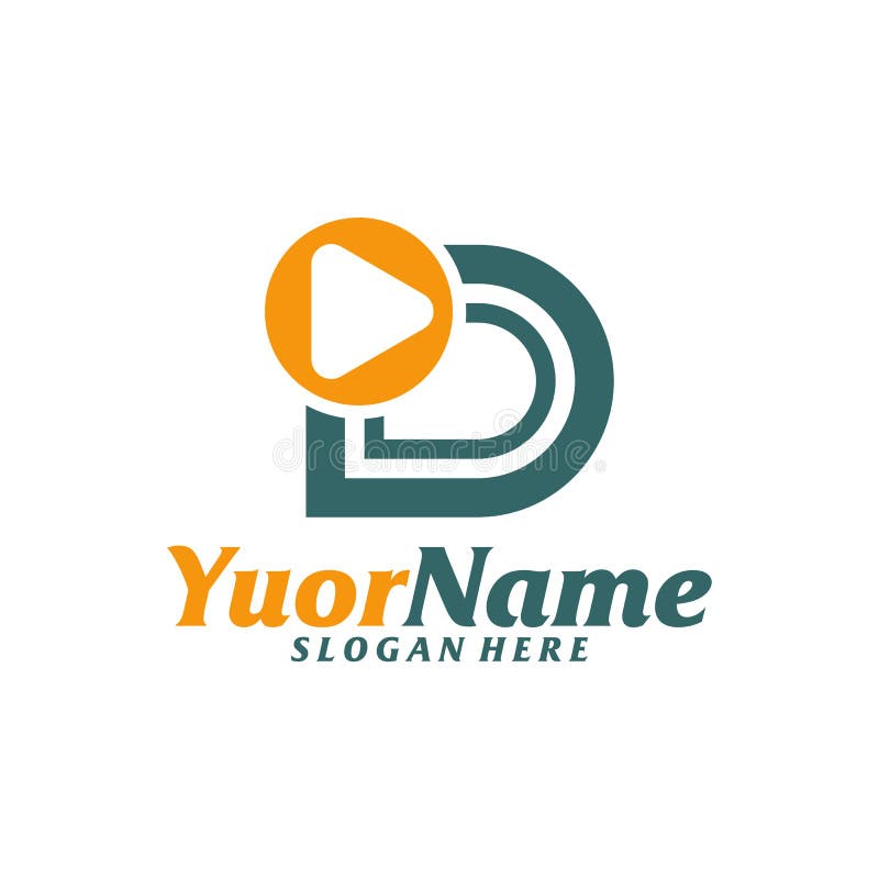 Initial D with Play Logo Design Template Letter D Logo Concept Vector