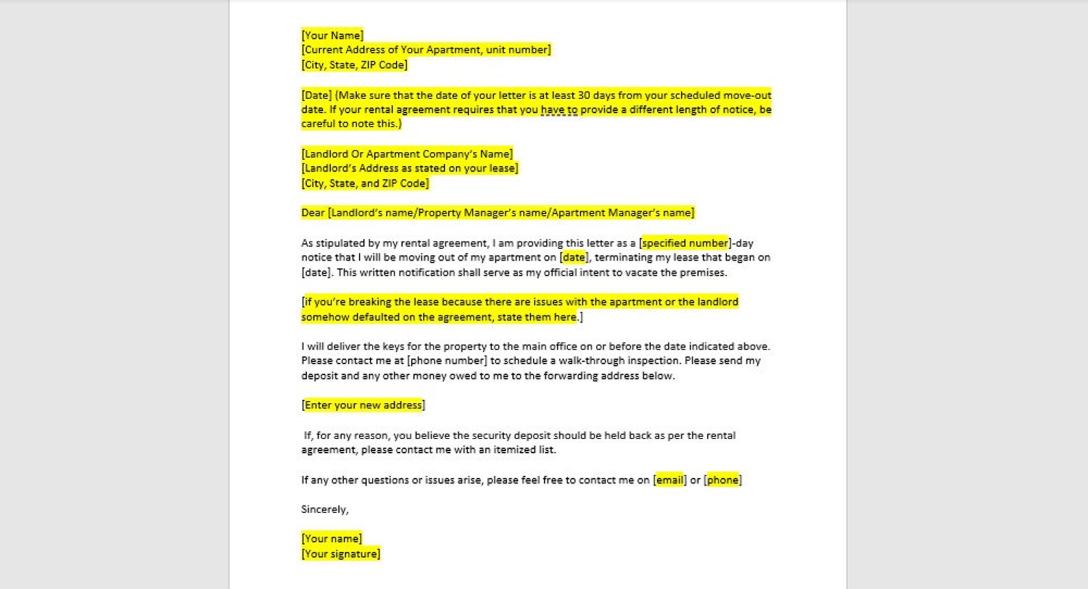 Free Notice to Vacate Letter Template to Edit Online