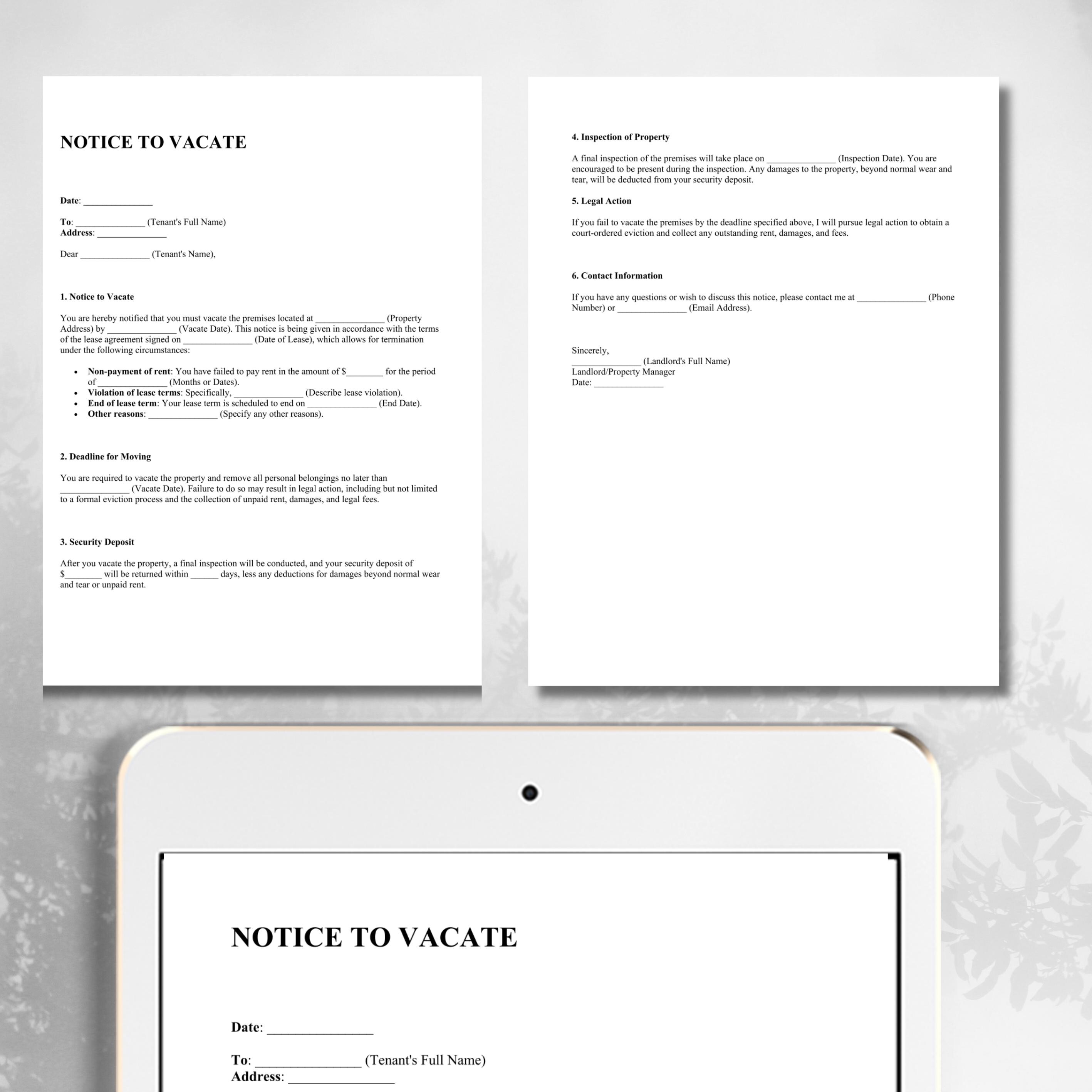 Notice to Vacate Template Notice to Vacate Letter Editable Etsy UK