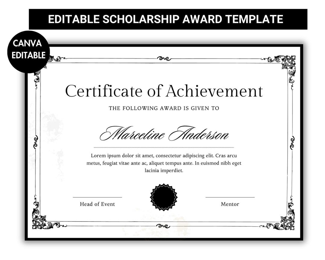 Editable Scholarship Award Template Canva Template Scholarship Award