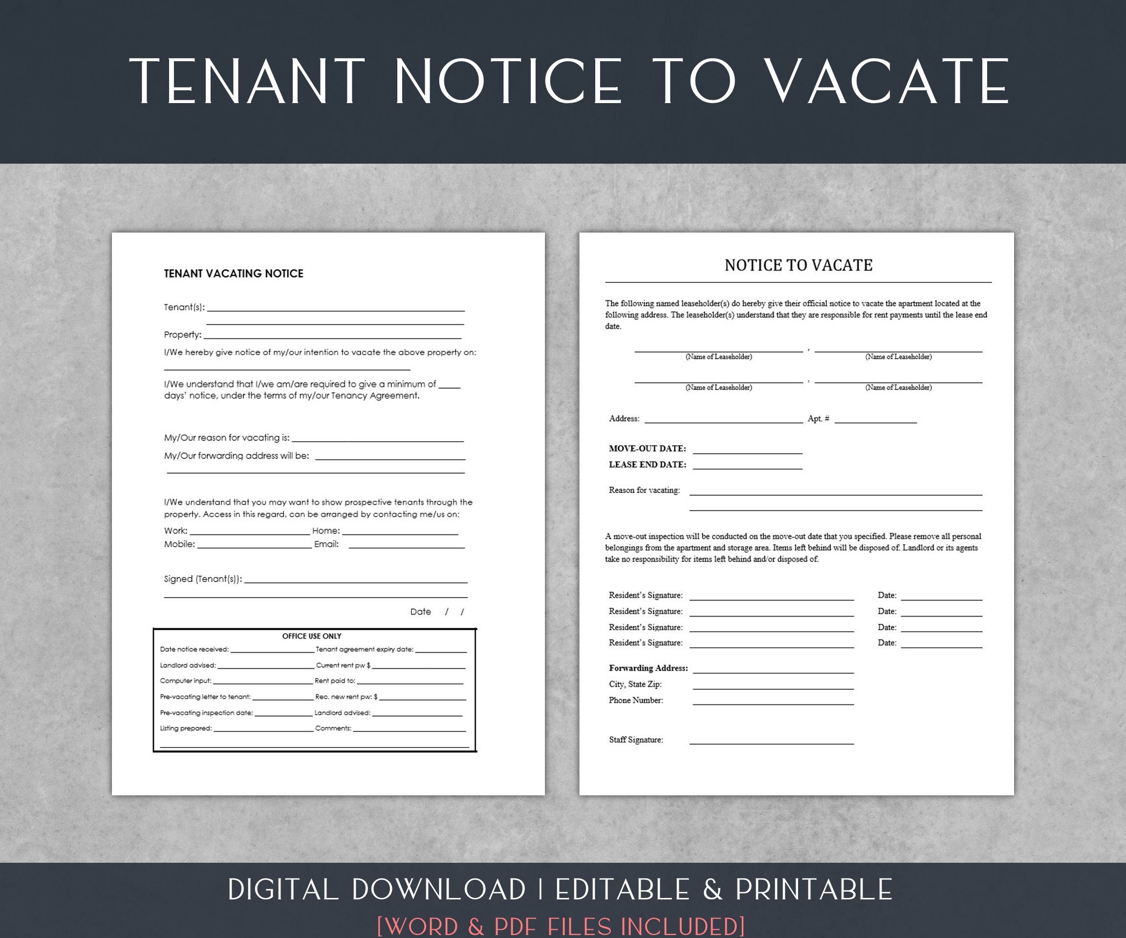 Landlord Notice to Vacate to Tenant Eviction Notice Editable MS Word