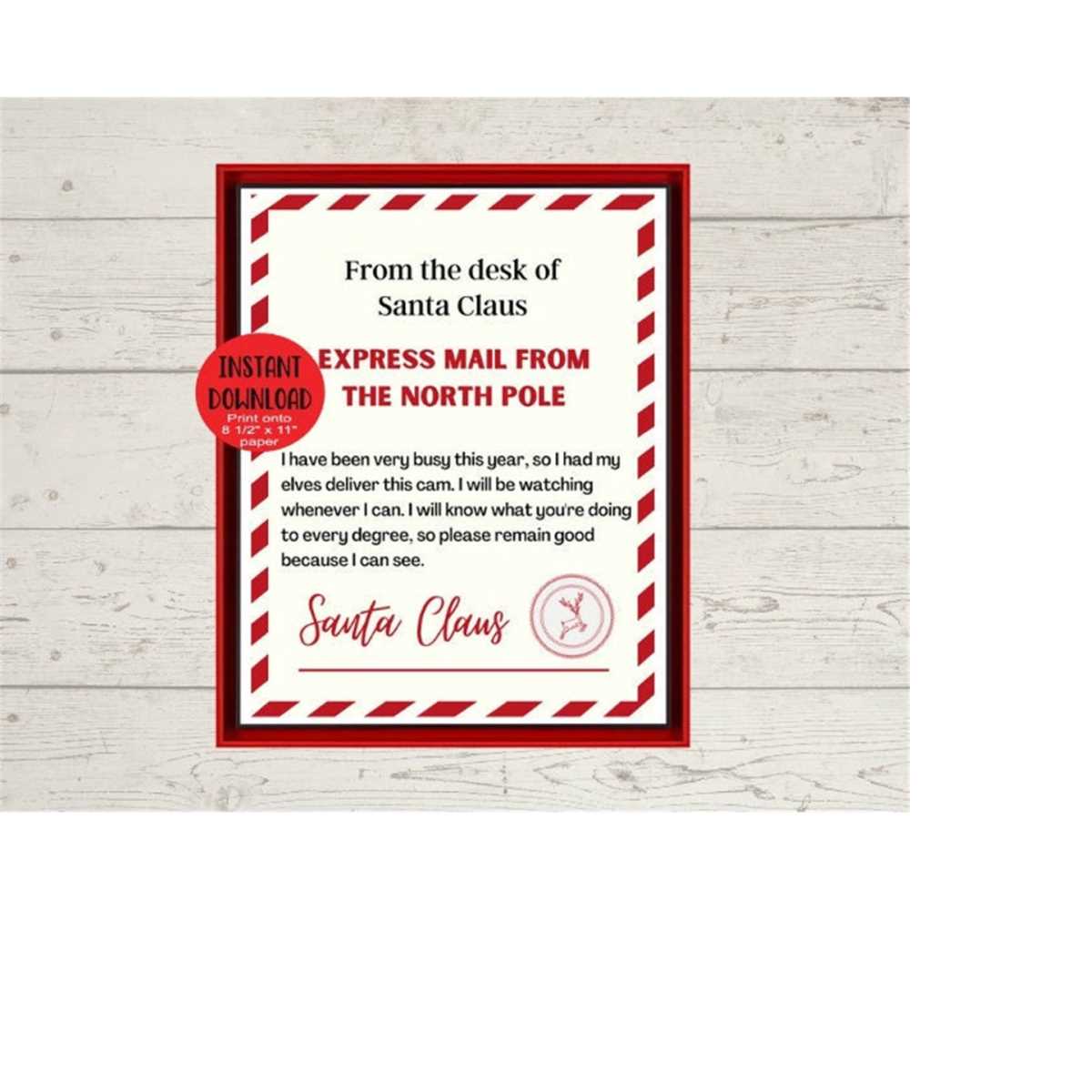 Santa Cam Letter Printable Letter From Santa Digital Download Etsy