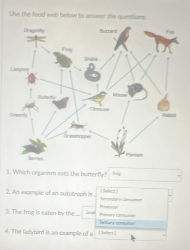 Resuelto:Use the food web below to answer the questions: 1 Which