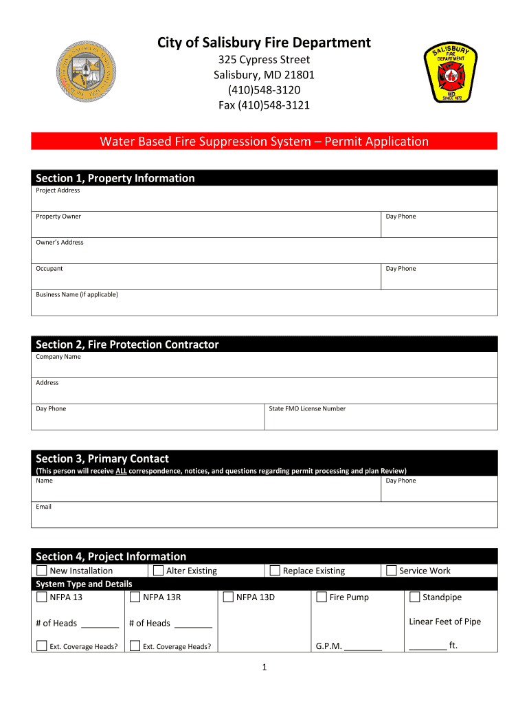 Fillable Online Water Based Fire Suppression System City of Salisbury