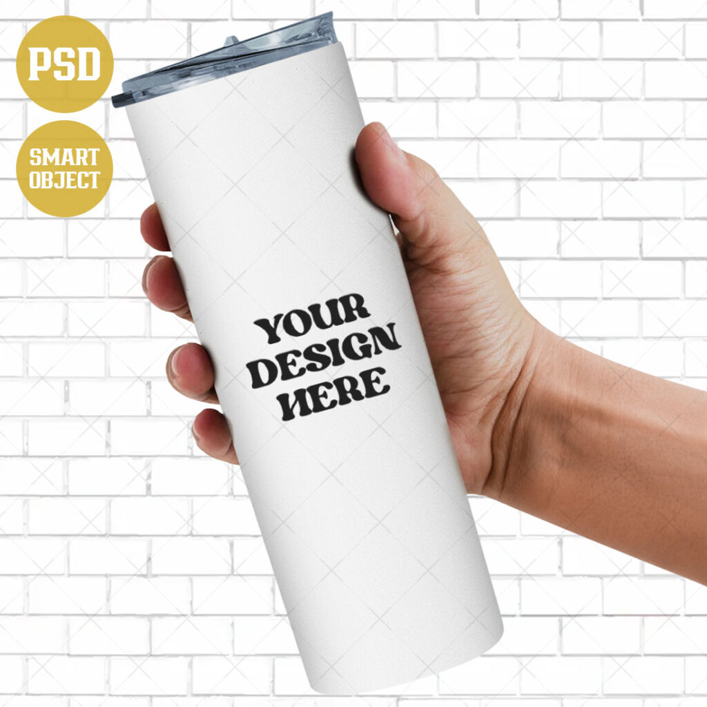 Hand Holding Tumbler Mockup PSD Mockup MasterBundles