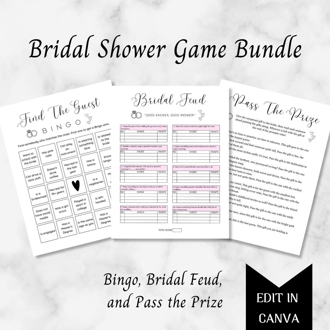 Bridal Shower Game Bundle Templates Modern Minimalist Bridal Shower
