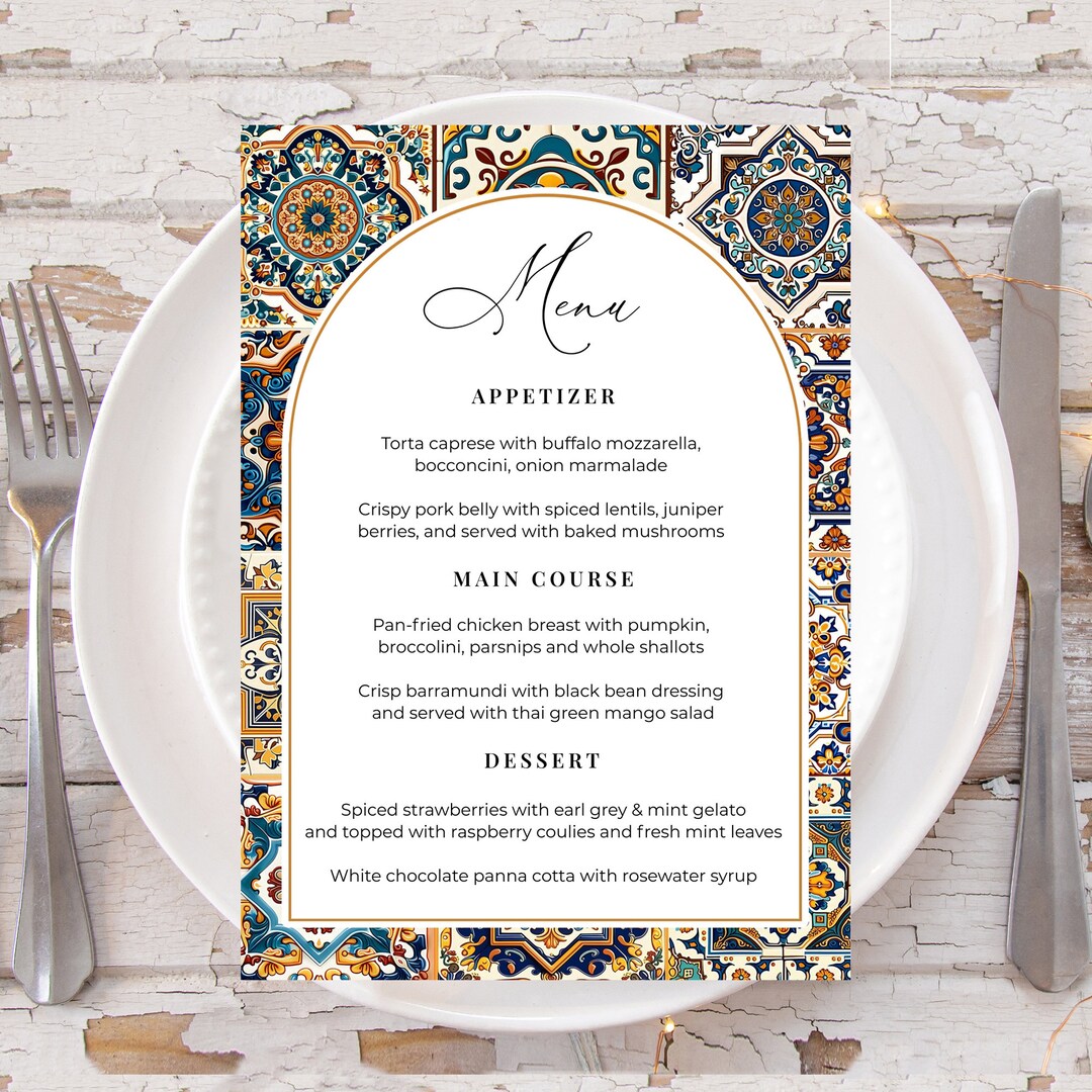 Spanish Wedding Menu Printable Template Tuscan Italian Menu