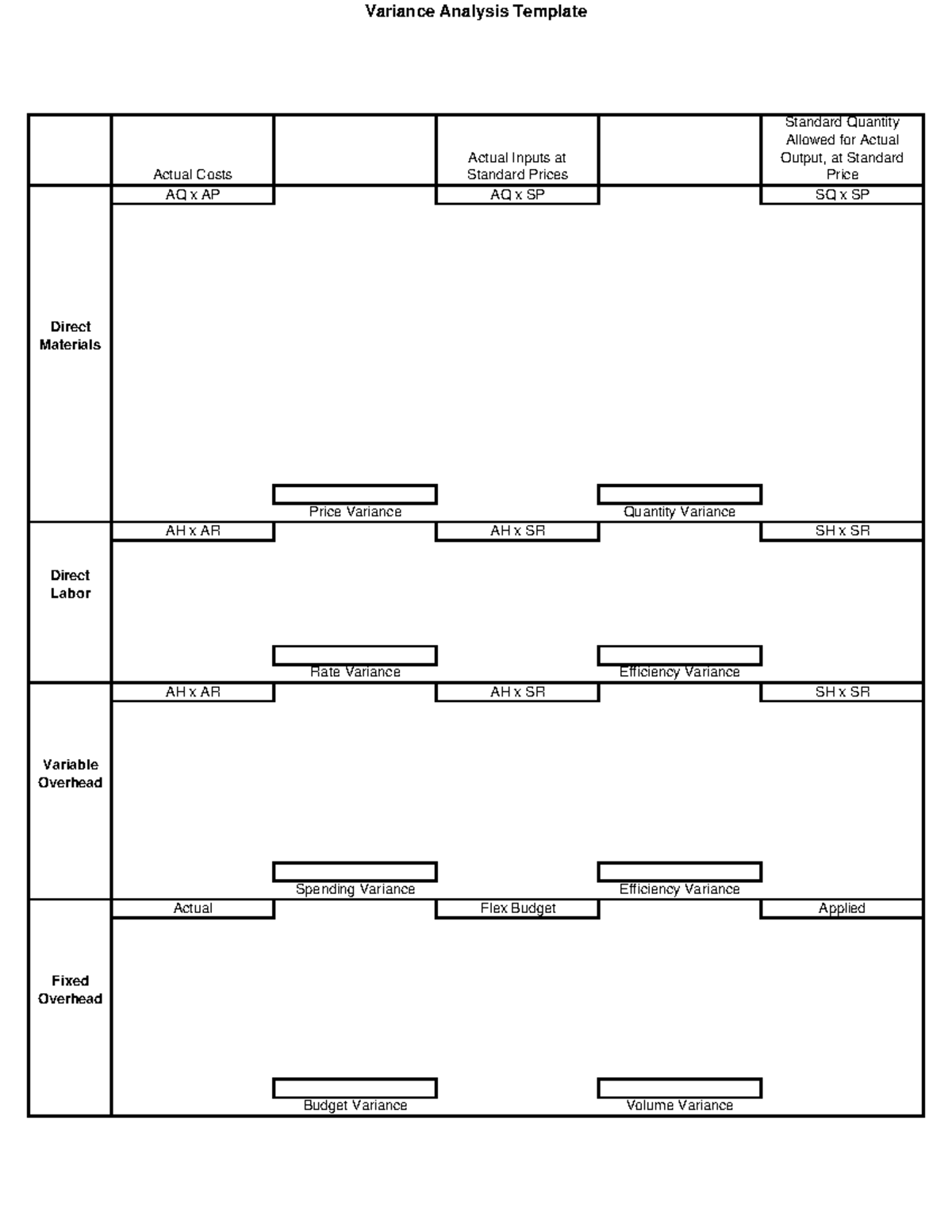 Variance Analysis Template Actual Costs Actual Inputs at Standard