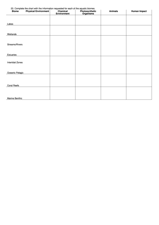 Aquatic Biomes Worksheet printable pdf download