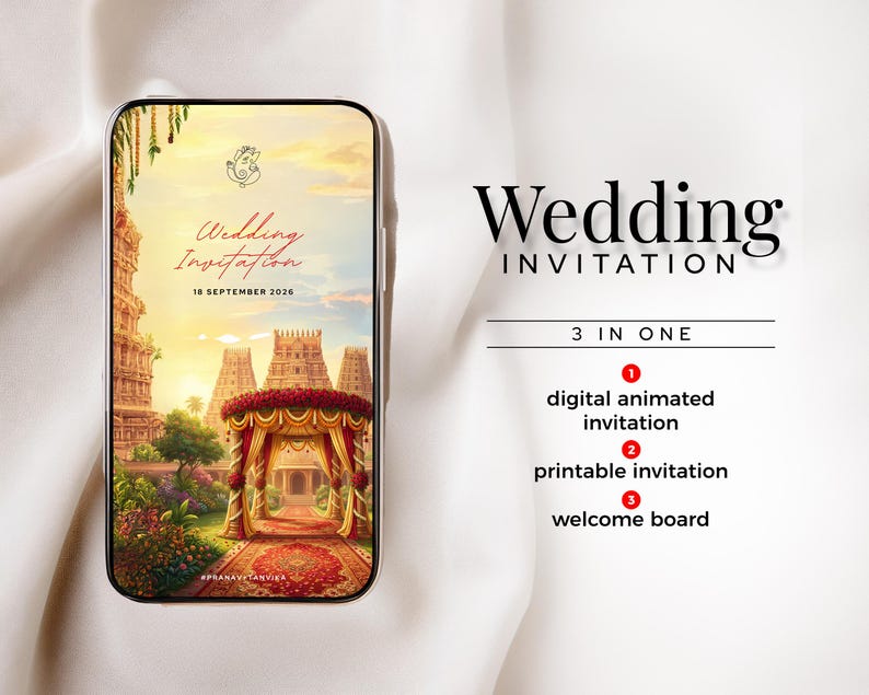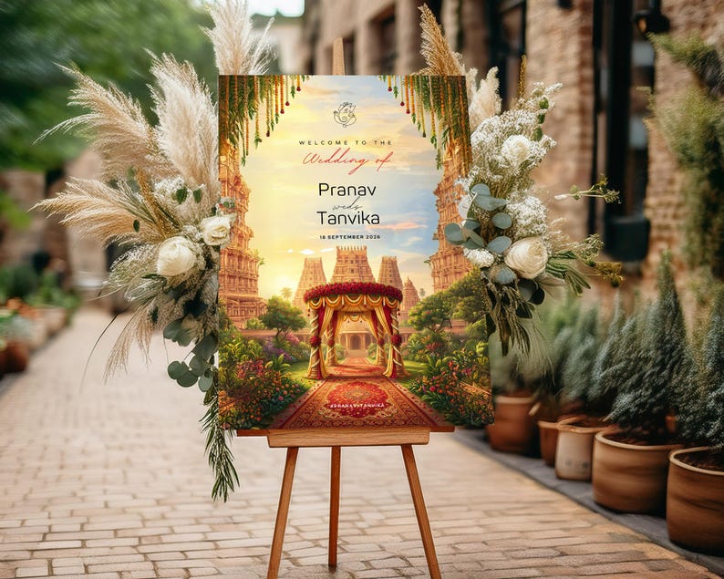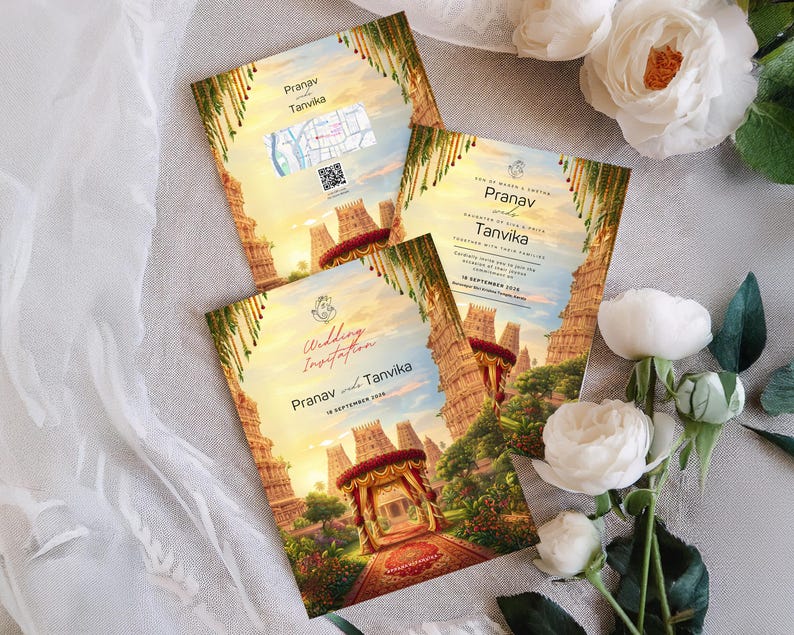 Hindu Temple Wedding Invitation Template Desi Wedding Card Canva