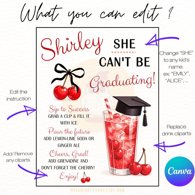 CUSTOMIZED PRINTABLE Shirley Temple Bar Sign Template Cherry Signature