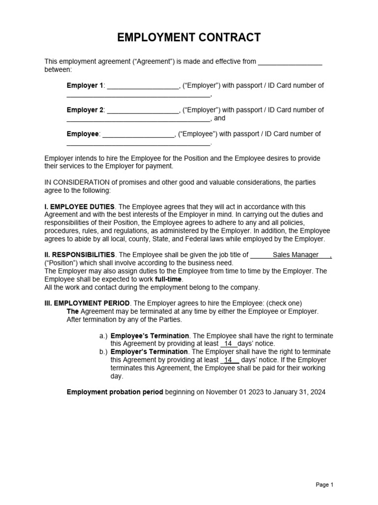 50 Ready to use Employment Contracts (Samples Templates) ᐅ