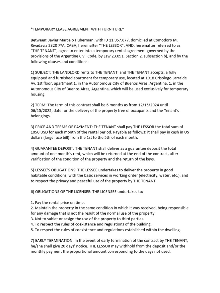Temporary Lease Agreement With Furniture PDF Lease Leasehold Estate