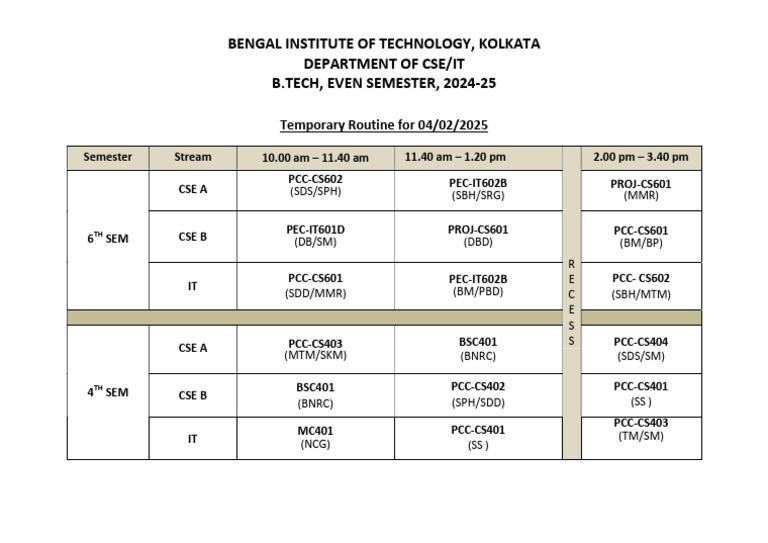 Temporary Routine for 04 02 2025 PDF