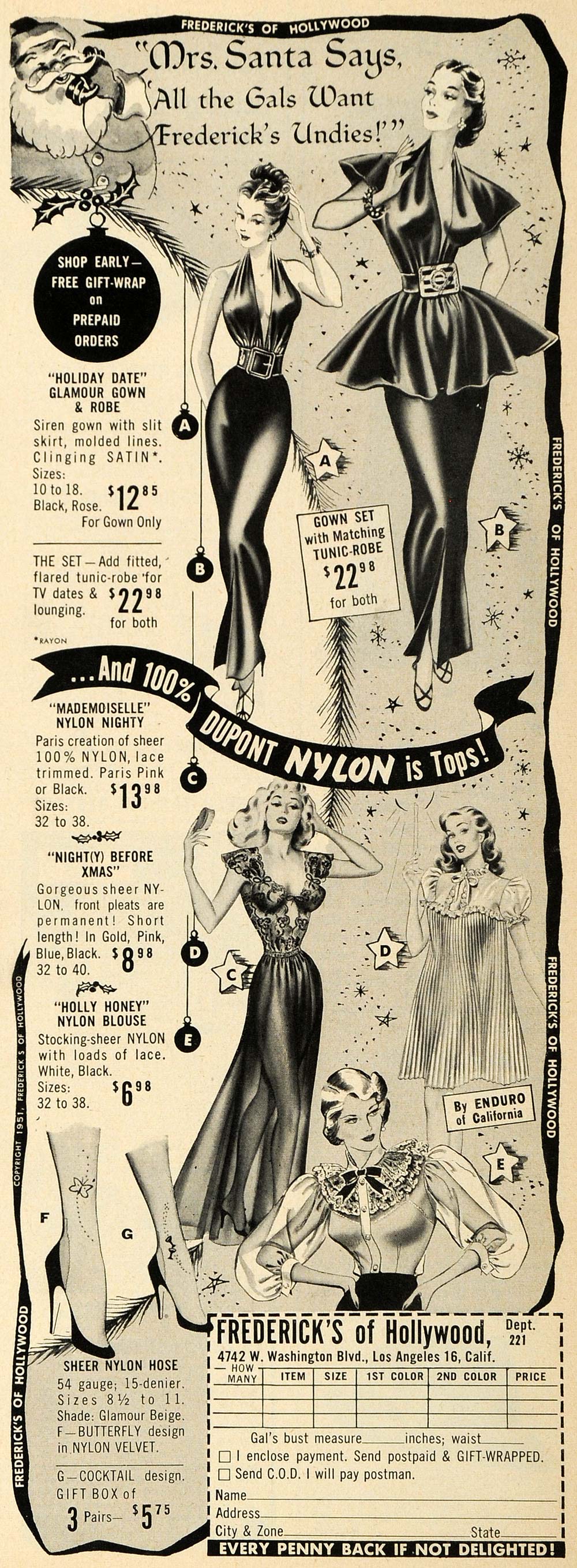 1951 Ad Lingerie Frederick #39 s Hollywood Santa Christmas ORIGINAL ESQ4