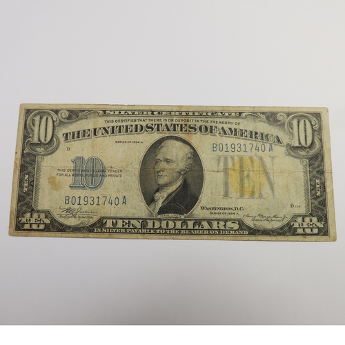 Lot 1934 Series $10 Ten Dollar Silver Certificate Currency Banknote